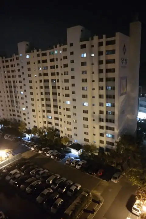 building apartments area 아파트. 공동 주택 양식의 하나. 오 층 이상의 건물을 층마다 여러 집으로 일정하게 구획하여 각각의 독립된 가구가 생활할 수 있도록 만든 주거 형태이다. 지상층에는 상점이 있을 수 있다. 상점을 같이 표시하려면 building:levels=*를 태그하고 전체 층의 수를 표시한다.