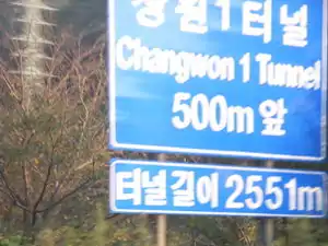 name=창원1터널 name:en=Changwon 1 Tunnel name:ko=창원1터널 name:ko-Latn=Changwonilteoneol length=2551