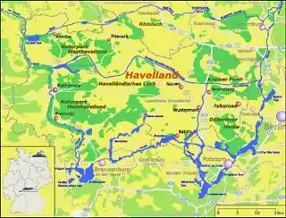 Landkreis Havelland ist ein Landkreis in Brandenburg auf der Breite 52°36′27.00″ Norden und der Länge 12°19′57.00″ Ost.