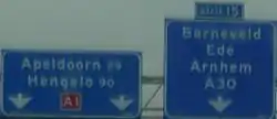 - The OSM way of the slip road. The signpost above the motorway indicates that the road ahead is referred to as A30 and is leading to Barneveld, Ede and Arnhem.