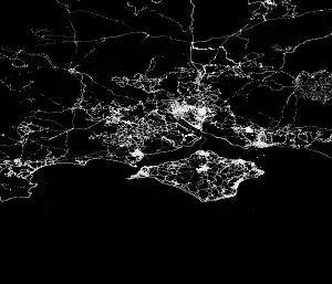 Node density in the south of England shows mapping activity in the Isle of Wight, Southampton, and the New Forest |