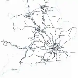 Railways and motorways in Britain - thematic maps can be generated using osmtrackfilter in conjunction with the normal rendering tools |