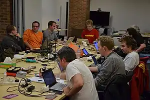 An OpenStreetMap "hack weekend" is a meet-up where we bring along laptops to an office space and spend the weekend doing some technical work to improve OpenStreetMap. This may be development of the "core" components, the editors, or any other side projects and pet projects we fancy hacking on. OpenStreetMap has development tasks sprouting from it in all directions. There's work to do in almost any programming language, as well as tasks like documentation, and even some non-technical graphics design and translation tasks.
