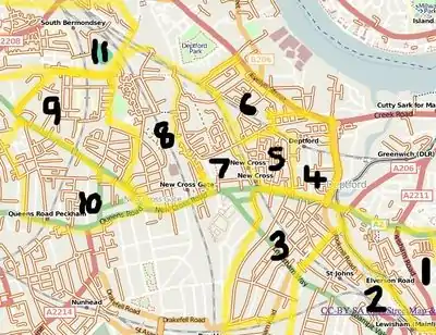 Where: New Cross, South London (normal map, unnamed streets map)
