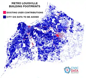 There are not a lot of buildings already in OSM for Louisville, KY. As of January 2014 there are less than 5,800, which is about 1.5% of the total. Where there is overlap, we will preserver the OSM edits, unless the city data is obviously better on a case by case basis.