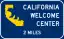 | File:MUTCD-CA SG47D.svg | SG47D | California Welcome Center with Arrow | tourism=information information=office name=California Welcome Center short_name=CWC brand=California Welcome Center brand:wikidata=Q108415255 2½ miles to the left destination:symbol=information on the cross street to the left destination:symbol=information distance=2.5 mi on the traffic sign node |