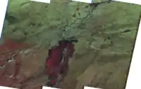 • 432 - 'near infrared' layer which shows vegetation in red, and bare soil in brown. Deep red hues indicate broad leaf and/or healthier vegetation while lighter reds signify grasslands or sparsely vegetated areas.
