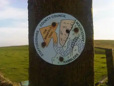 The Manifold Trail runs from the source of the river Manifold near Flash down to Ilam in Staffordshire. This isn't the "Manifold Track" cycleway south of Hulme End, although a short section of this route does run along that track.