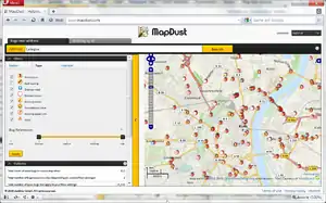 MapDust (MapDust.com, Skobbler GmbH) is an interface to report bugs (problems) that relate to OpenStreetMap. The intention is to enable the widest possible range of people to improve the OpenStreetMap database regardless of their technical skills. Although similar to other Quality assurance tools, particularly Notes, MapDust differs in the type of bugs most frequently reported. Due to its inclusion in the iOS app, Skobbler Navigation, there is a focus on reporting issues related to navigation. The website provides interactive routing in the bug details view.
