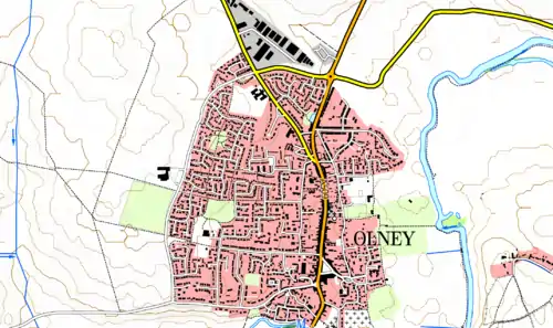 load-source Olney.osm.bz2 set-geo-bounds -0.727313369708301,52.1499750433728,-0.683472226307852,52.1659445173278 set-print-bounds-geo zoom-bounds use-ruleset alias=default apply-ruleset export-bitmap map-scale=5500 file=SampleRenderings/MaperitiveDefault.png