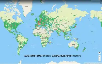 Mapillary (mapillary.com) is a service for sharing geotagged photos developed by a Swedish startup, that was sold to Facebook in June 2020.[1] Its creators want to represent the whole world (not only streets) with photos [2][3]. They believe that for covering all interesting places in the world, there needs to be an independent, crowd-sourced project and a systematic approach to cover interesting areas. Services like Google, having especially equipped cars with camera mounts, are not going to be able to cover the world in sufficient detail [2]. According to them, the local knowledge is almost unbeatable, and people know what really matters in capturing a photo [2]. They are interested in coverage of any outdoor place and this can contribute to a system that represents the world with high level of detail [1]. Most of the "intelligence" of image processing is done on the server side using Big data technologies and computer vision, making the data collection super simple for the user. As a result, Mapillary will improve with each new photo since all new photos are related to any existing photos in the vicinity. Here is a short presentation [4] for a brief technical overview. The idea is that the users of the data are empowered to increase coverage in areas that interest them [2]. The developers of Mapillary believe there is a place in the market for a provider of neutral and independent pictures [2][3]