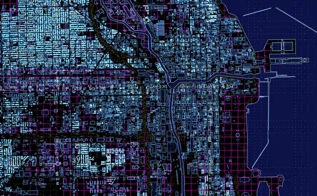 The "tronish" style. One of several map styles created using the Tangram WebGL system, which renders from the vector tiles.
