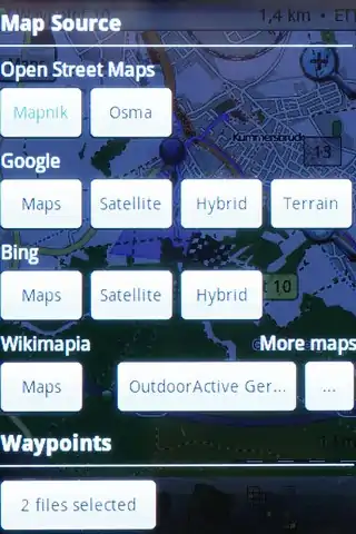 - other maps: Google, Bing, outdooractive (Germany, Austria,South Tyrol) Nokia Maps, Cycloatlas (CZ, SK), Near Map Australia