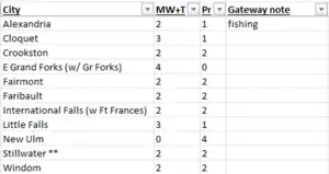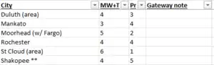 - Some cities can also be characterized by the fact that, while they are in Minnesota, they are “gateways” to important cities in nearby states or Canada. The Gateway Note identifies these cities. The fact that they are gateways factors into their final tier assessment.