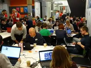 Additionally to this, the hangout was overly relied on. In the rush to prep for the event, the wiki page (this page) wasn't updated with the tasks, so when the hangout failed, people who wanted to crack on, couldn't.