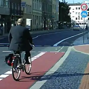 | cycleway | Piste cyclable standard | La piste cyclable est une chaussée dédiée à la circulation vélo, séparée physiquement des autres circulations par une bordure, une barrière ou de la végétation le plus souvent. | ![]() ![]() | ||