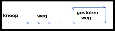 - Knopen: De punten die worden gebruikt om specifieke locaties te specificeren (zoals een brievenbus). Twee of meer knopen worden gebruikt om lijnsegmenten te tekenen.