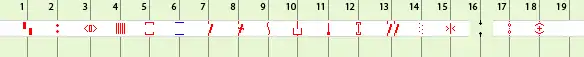 De lage zijde bevindt zich aan de rechterkant van de wegrichting, aangeduid met een reeks van stippen. - 7 barrier=city_wall + two_sided=yes. Beide zijden hebben dezelfde hoogte, aangeduid met stippen aan beide kanten.