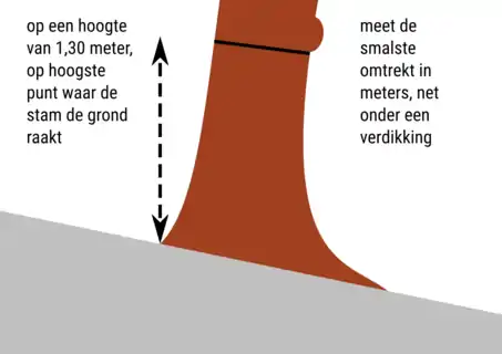 | Omtrek van een boomstam op 1,30 meter boven de grond |
