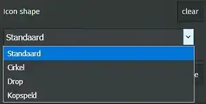 Het dropdown menu voor Icon shape geeft 4 mogelijkheden.