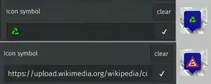 - In het veld mag een Unicode teken staan. Deze tekens zijn op het web te vinden[1]. Een greep uit deze enorme set: ♻️ Ⓜ️ ☢️ ⚠️ ⚡ ⌘