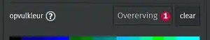 Expanderen van kleur geeft de gebruikte kleur bij 1. Nu kan een andere kleur uit de set bij 2 gekozen worden.