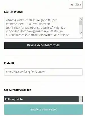 Bij Kaart inbedden worden de iframe gegevens getoond om deze kaart in een andere website op te nemen. Recept: