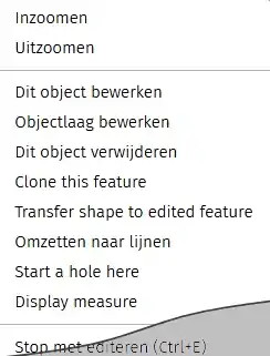Opties die in bovenstaande acties niet mogelijk zijn en wel via deze menu's: Transfer shape to edited feature en