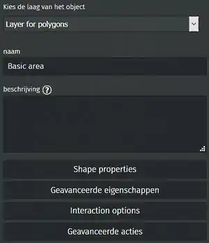 Met de andere knoppen kunnen de gegevens van de veelhoek verder gedetailleerd worden.