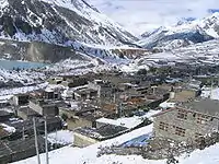 | Building Any building | building=yes | ![]() Manang, a large village with tourist facilities. | ![]() Manang, a recent view of the village. Note the use of electricity and glass windows, both exceptional in this area. Electricity was not present in 1985. | If the building type is known use one of the more specific values, such as building=school, building=house: see building=*. If you aren't sure about the type of building it is, tag it as building=yes For other man-made structures which are not buildings see man_made=* Wikimedia commons has many other photos of buildings in Nepalese villages. Most will be from areas visited by tourists, so may be better built than in other places. |