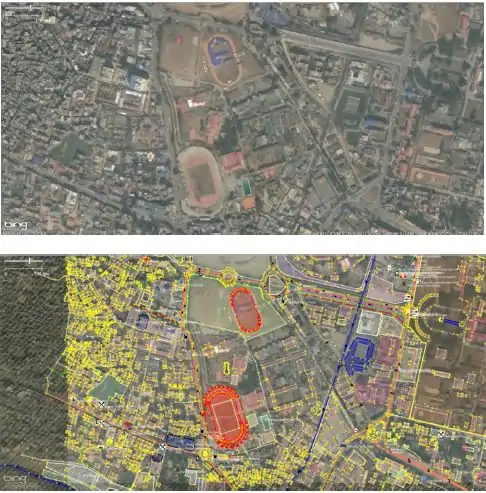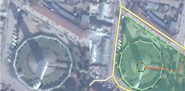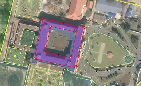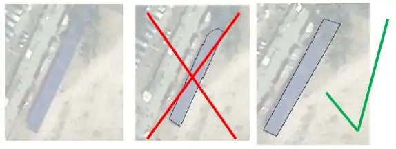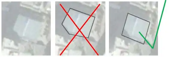 Also, buildings that are very tall can look like they are leaning to one side, because the satellite picture was taken at an angle. In this case it is important to map the base of the building, not the roof.