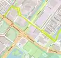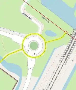 - Now let the return branch begin on this same Node. Add the ways of the cycleway roundabout up to the appropriate leaving Node.