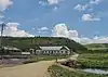 Weir or small dam, to be described with the tag waterway=weir; it is an obstacle smaller than waterway=dam that allows water to spill over it