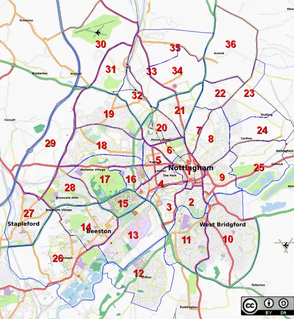 - Nottingam City Transport (NCT), Trent-Barton. List of main bus routes in city. Currently only about 5% implemented as relations.