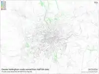 | 9 | Sneinton 52°56′58.92″ N, 1°07′44.76″ W | Most roads present, with majority named. | ||