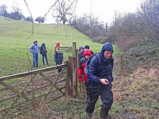 A total of 9 attended, with a hardy crew of 8 actually going out in the murk to look at the crater. We were joined by User:brianboru for lunch. After lunch some detail was mapped in the village of Hanbury and 3 separate parties covered further footpaths on the ground.