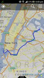 Routes can be computed from the current GPS location to POIs within a range of 200km. They can be computed for cars, bicycles and pedestrians taking into account turn restrictions.