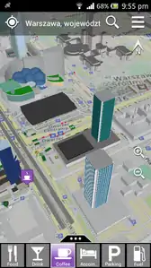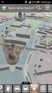 OSG-Maps displays the OpenStreetMap map on a virtual globe in 3D. Great for navigating in the city and yellow pages search. Buildings are displayed as 3D bodies including roof shapes. By using the integrated 3D acceleration on the device, a very smooth navigation in the map is achieved. The transitions between zoom level is seamless - there is no switching between different display modes.