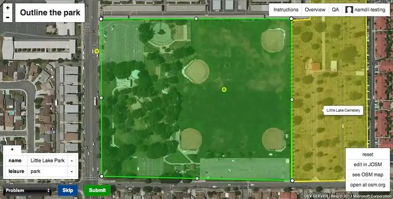 Technically, OSMLY took in GeoJSON data and makes sure geometry is valid, simplifies, flags obviously difficult items, adds bounds for each item, and converts everything to a sqlite database ready to be served up to the world. A simple server takes care of routing requests from the browser to database queries and returning results. Once the user has received a new feature the surrounding area is download from an OSM server and those results are filtered for relevant geometry. Then it's all displayed on the map. From there it gets a bit more complex depending on the user's actions.