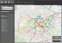 OSMTransport was a website showing public transportation systems in many locations worldwide. It was developed by the French Open GIS solutions company 3Liz (team: René-Luc d'Hont, Nicolas Bozon, Michael Douchin).