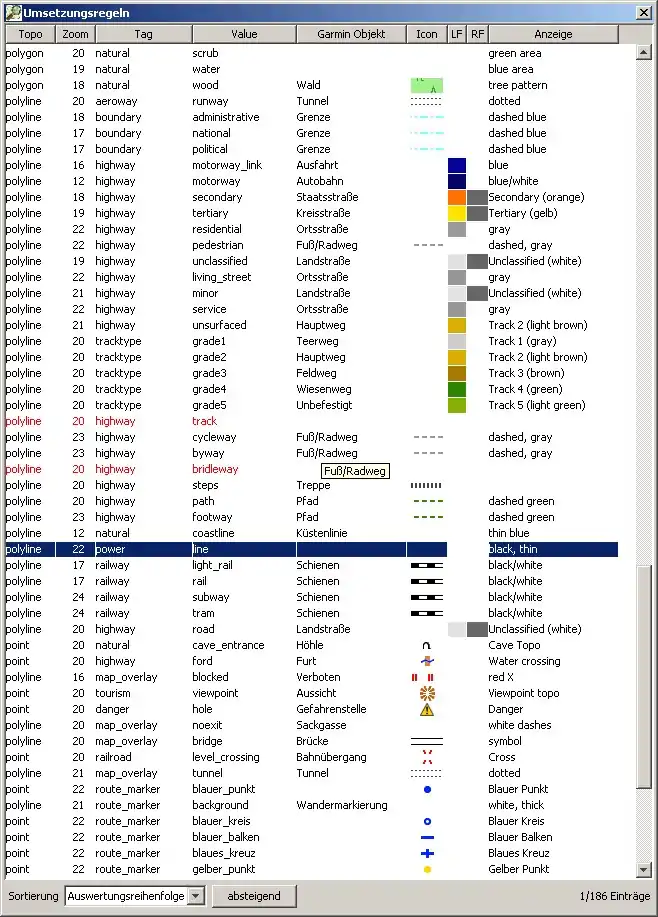 Screenshot of the editor for mkgmap rules with integrated TYP file support.