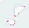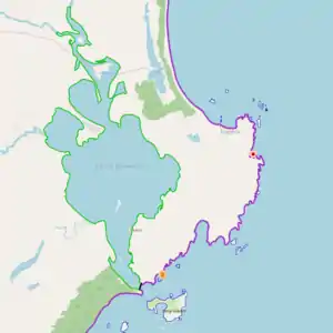 Questionable shows coastline rings with possible problems. There are several different kinds of problems that are shown in this way: a) Coastline rings that touch other coastline rings in a single point. Those should probably be fixed. b) Coastline rings having the wrong direction. Those should be fixed. c) Smaller water areas inside a continent. Those should probably be changed to use natural=water or similar tags. Sometimes when there is a gap in the coastline, this will show the direct connection between the endpoints of this gap, even though there is no actual way there. Use your judgement in all these cases!