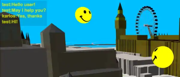 There is a chat implemented in “OSM go”! Press key C and enter text in the popup dialog. The actual chat texts will be shown in the text box at the top left. There you will also see if an other user is dropping in or leaving. If you like to test it with me (karlos) just send me a time, I may be there and guide you. So don’t be afraid if you use “OSM go” and see a moving smile. Some visitors and me had already a lot of fun doing this. Some user of “OSM go” may have been shocking surprised, sorry.