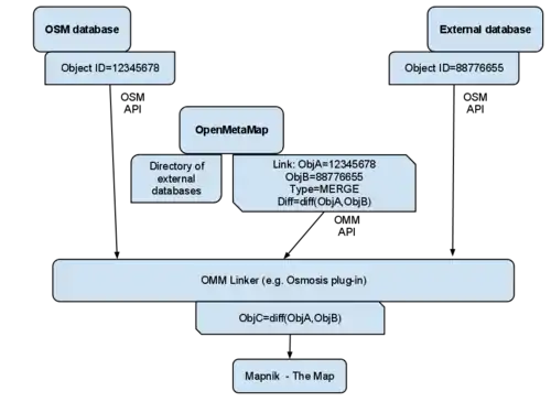 OpenMetaMap is a proposed tool to enable linking different datasets with OSM data without real importing of data to OSM. Basic idea is that OSM database should have only pure crowd-generated original data, all external datasets should be somewhere else, but we still want and need other database data in the OSM rendering (collective databases).