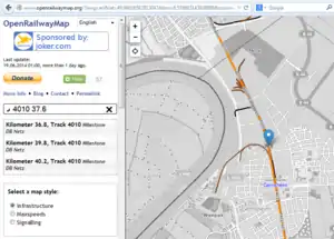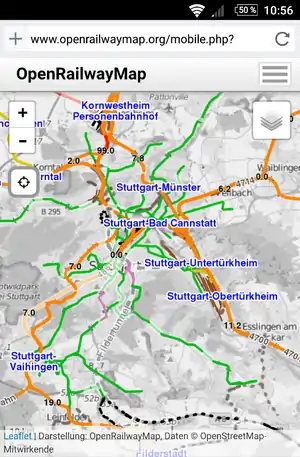 OpenRailwayMap (previously called "Bahnkarte") is a detailed online map of the world's railway infrastructure, built on OpenStreetMap data. It has been available since mid-2013 at openrailwaymap.org.
