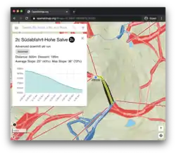 OpenSkiMap (openskimap.org) is a map optimized for downhill skiing/snowboarding, cross country skiing, and backcountry skiing. The project was started in 2011 using raster Mapnik tiles. In 2018 v2 was launched using Mapbox vector tiles. In 2019, the project was open sourced on Github.