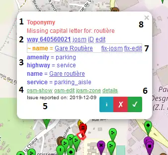 - ℹ Help on OSM wiki: open a new browser tab with help about this specific type of issue on the wiki and tips on how to fix it (see the list of issues).