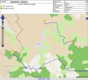 - edit – a link to the internal Osmose tags editor for this element ; this opens a panel on the right of the map
