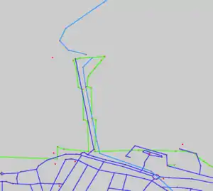 Note, the area to the right of the pier, where roads appear to be in the sea, is in fact an area of land reclaimed a few years ago for an ice rink, and a harbour. Depending on when the source data for PGS was taken this may well have not existed at the time.