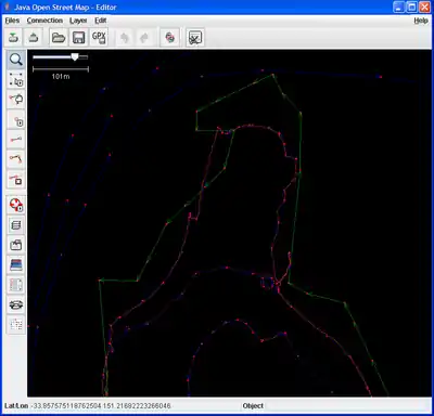 - I walked the perimeter of Sydney Opera House a couple of months ago. This is a very well defined bit of coastline with, AFAIK, no tidal variation. These two images show the PGS data (green) overlayed on my tracklogs (red). The white outline in the second image shows the PGS best-fit. This is the result of a shift due south by about 60m (according to the JOSM scale indicator).